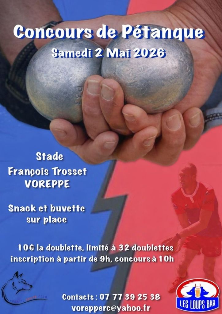 Le samedi 02 mai 2026, notre club organise un concours de pétanque au stade de rugby de Voreppe.