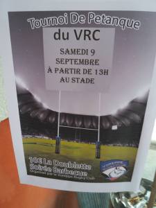 Le prochain tournoi de pétanque organisé par le VRC aura lieu ce samedi 09 septembre 2017…